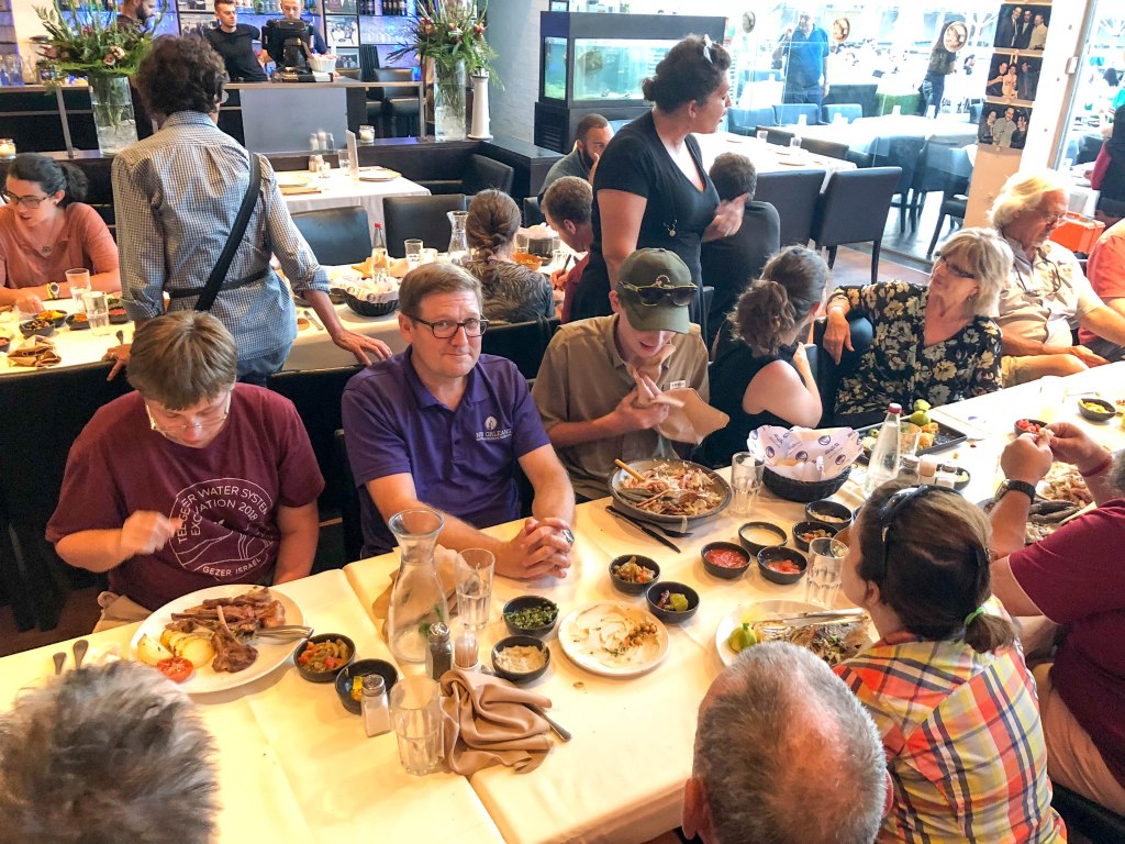A special series of extra activities were planned for us during Week 3, including a tour of the campus and restoration laboratory at TAU, a lecture by Professor Oded Lipschits, Director of the Nadler Institute of Archaeology, and a fantastic dinner out at the Tel Aviv waterfront. We made another site visit, to the City of David in Jerusalem that included walking through Hezekiah’s Tunnel, and attended a special ceremony to mark the closing of the NOBTS excavation at Tel Gezer.